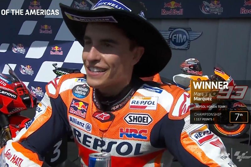 A peine descendu de sa Honda RC213V officielle après avoir remporté pour la 7e fois le Grand Prix des Amériques à Austin, Marc Márquez s’est confié devant la caméra du site officiel MotoGP.com.