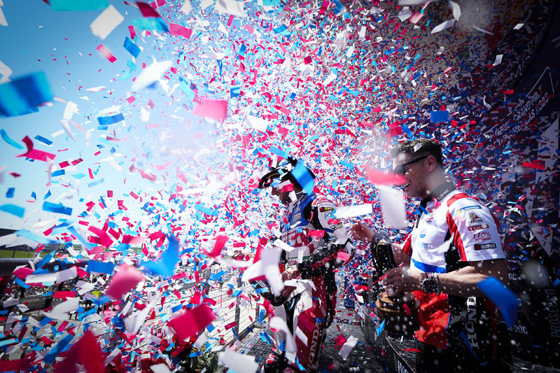Álex Rins : « Merci ! C’était incroyable, et quand j’étais dans l’atelier LCR Honda cet hiver, Lucio a mis une vidéo dans son musée et a dit que nous avions 99 podiums dans notre équipe, et j’ai dit « merci pour la pression (rires) ! ». Nous l’avons fait. Je suis très heureux de cette victoire, mais aussi du week-end, car nus avons fait un très bon week-end où nous avons travaillé dès le vendredi, donc nous sommes passés directement en Q2, deuxième aux qualifications, nous avons fini deuxième au Sprint et ensuite la victoire… Honnêtement, Pecco nous a montré un rythme très fort, j’ai eu un peu de mal dans les troisième et quatrième secteurs, et dans les secteurs 1 et 2, j’ai poussé un peu à la limite dans les chicanes pour réduire l’écart avec lui, mais je suis très heureux. »