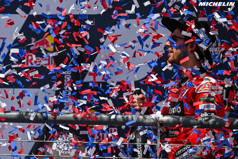 Après sa saison 2023 entièrement gâchée par un accident provoquée par Luca Marini lors du Sprint au Portugal, c’est un Enea Bastianini très rapide et très régulier que nous retrouvons cette année, ce qui lui permet pour le moment de surpasser son coéquipier tenant du titre et de grimper à la deuxième place du championnat, juste derrière celui qui veut lui prendre sa place dans le team usine Ducati…