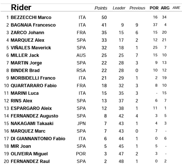 Crédit classement : MotoGP.com