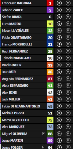 En pleine spirale positive, on peut placer pêle-mêle Marco Bezzecchi, le Mooney VR46 Racing Team, Alex Marquez, Franco Morbidelli et KTM, alors qu’à l’inverse on notera parmi les têtes d’affiche les contre-performances relatives de Francesco Bagnaia, de Fabio Quartararo et des troupes Aprilia, même si pour ces dernières Maverick Vinales s’en sort le mieux grâce à un beau week-end au Portugal.