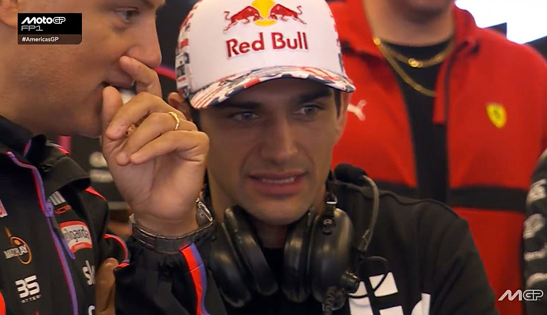 De même, Augusto Fernandez est dans le box Pramac, mais cette fois sur la moto de Miguel Oliveira.