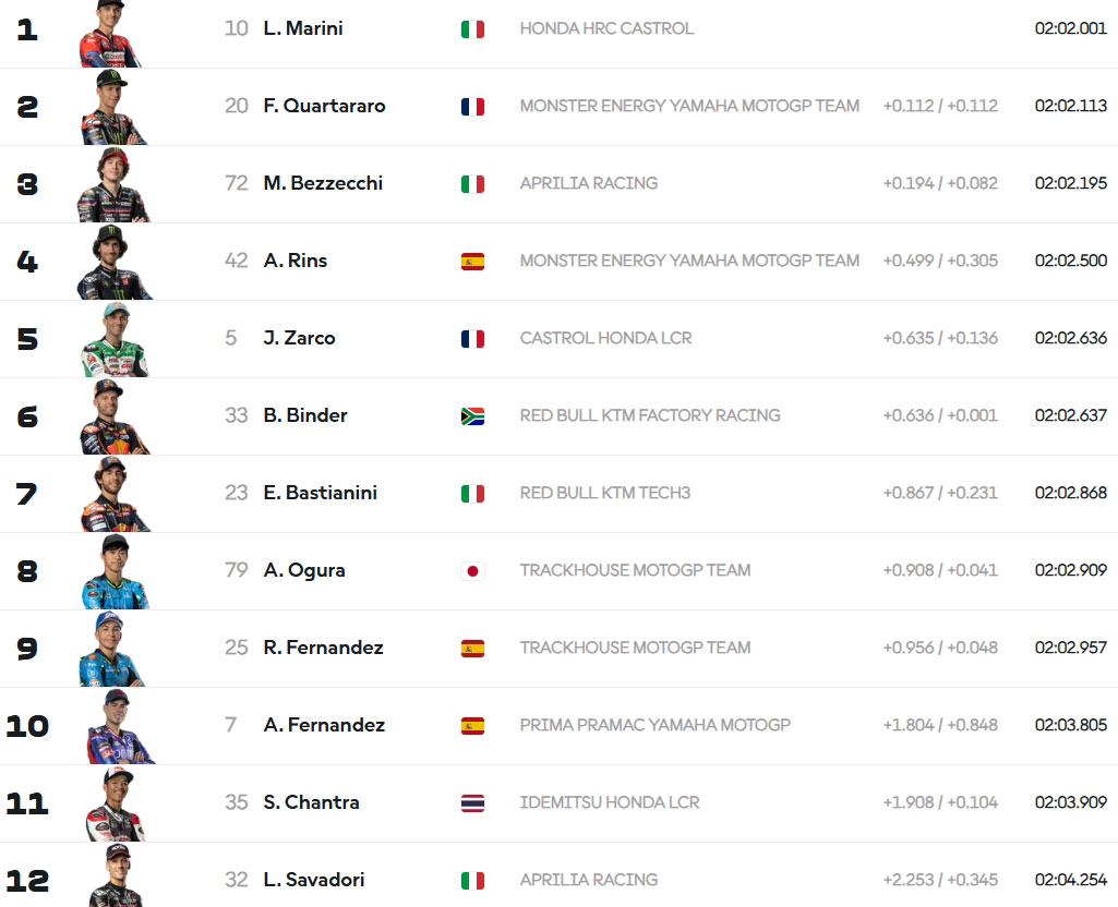 Marini tient la ligne en 2.02.001s devant Quartararo en 2.02.113s…