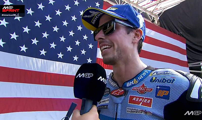 Alex Marquez : « Je suis très heureux, honnêtement, d’être deuxième ici au Texas, c’est comme une victoire. Je veux dire que si vous êtes deuxième derrière Marc, c’est comme une victoire parce qu’il est à un autre niveau. Mais quoi qu’il en soit, je pense que nous avons pris un très bon départ au début. Le gars qui est quatrième était à 7 secondes, alors nous avons poussé comme des diables. Les conditions de piste étaient très différentes de celles de ce matin, mais nous nous sommes bien débrouillés. Je suis très heureux de cela. »