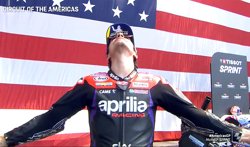 A peine descendu de son Aprilia RS6GP 24 officielle après avoir remporté de main de maître le Sprint du Grand Prix MotoGP des Amériques sur le COTA à Austin, Maverick Vinales s’est confié devant les caméras du site officiel MotoGP.com très très excité…