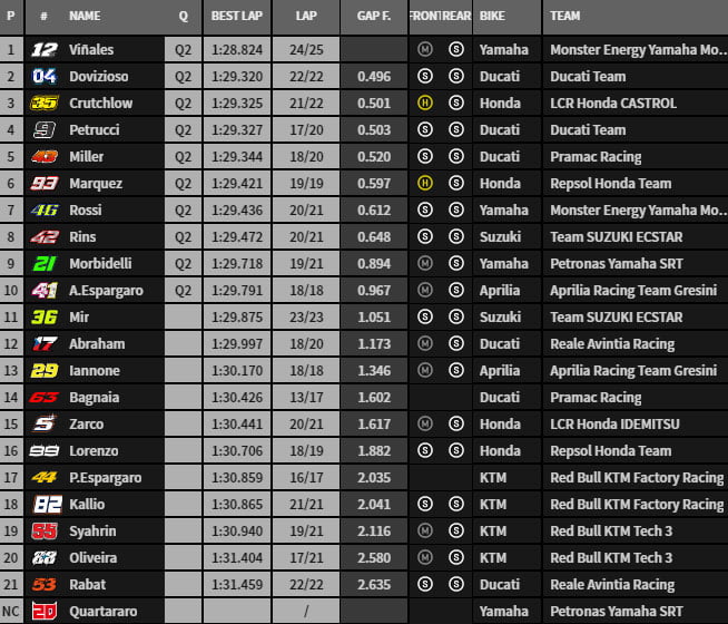 Les deux officiels Ducati sont 11e et 12e, juste devant Fabio Quartararo.