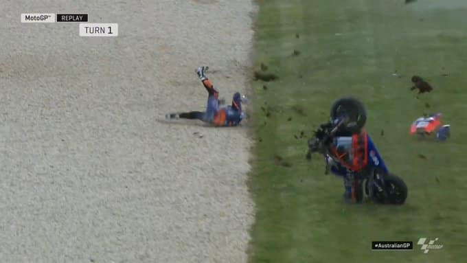 The @Tech3Racing rider is conscious and being helped away on a stretcher 💢#AustralianGP 🇦🇺 pic.twitter.com/LOpKexin8J