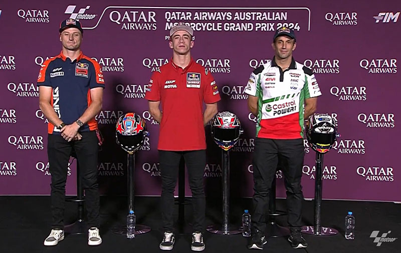 En tant que dernier vainqueur en date sur le tracé, Johann Zarco était convié à la seconde conférence de presse en prélude au Grand Prix MotoGP d’Australie, en compagnie de Pedro Acosta et Jack Miller.