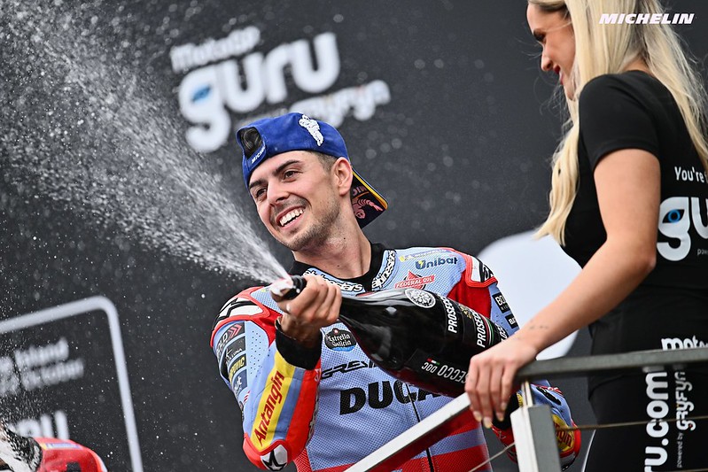 Le podium d’aujourd’hui est complété par un homme qui a certainement crié dans son casque lorsqu’il a franchi la ligne d’arrivée, le Gresini Racing Fabio Di Giannantonio. Fabio, que pouvons-nous dire ? Vous vous êtes battu pour la victoire et le podium tout au long de ce Grand Prix, alors décrivez vos émotions après ces 27 tours passionnants.