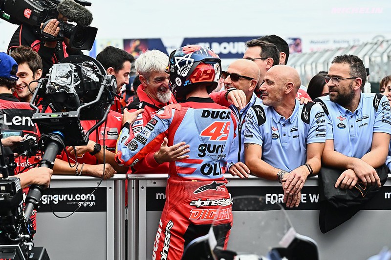 « Non, ce fut un honneur de piloter la Ducati en MotoGP. C’est une machine fantastique, elle est très rapide, elle a beaucoup de potentiel pour faire de grandes choses. Comme vous pouvez le voir, nous sommes trois Ducati sur le podium et la plupart du temps les Ducati sont en tête de la catégorie, donc c’est un honneur. De mon côté, j’ai aussi beaucoup appris de ces gars-là, car nous avons la possibilité de comparer nos données avec les leurs. Cela vous donne une opportunité incroyable de progresser et de comprendre, de vous améliorer de votre côté. C’est sûr que ça n’a pas été facile parce que de votre côté, si vous avez la même Ducati que Pecco, vous devez gagner comme lui (Rires).