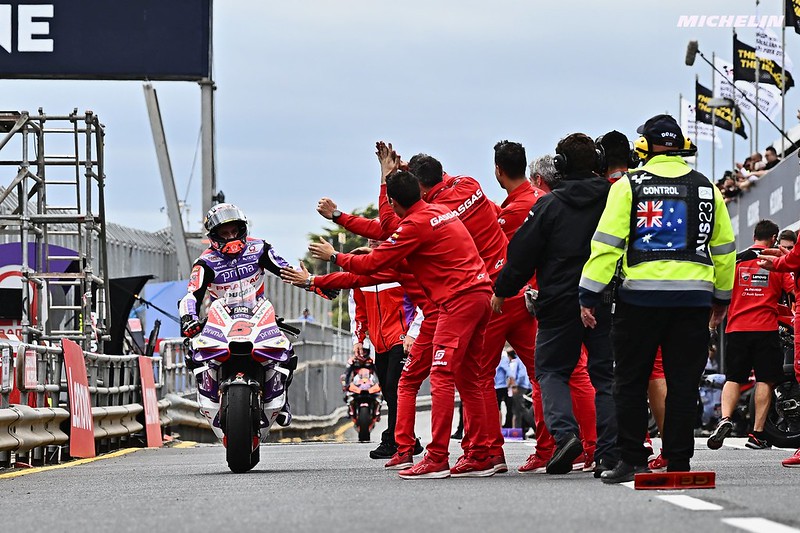 Johann Zarco : « Et ça fait du bien (rires) ! Parce que parfois vous poussez toujours et vous essayez de l’attraper, mais parfois vous dites, eh bien, il y a d’autres pilotes qui ont le rythme, ils ont ce feeling, et tant que vous ne l’attrapez pas, il semble que vous ne puissiez pas gagner comme Pecco l’a fait depuis maintenant plus de trois ans. Il vole sur la Ducati et il a gagné tellement de courses. Jorge aussi maintenant, en qualifications, il fait des choses incroyables et il peut bien contrôler la course. Mais celle-ci était spéciale et le choix du pneu arrière médium était important. Et j’ai vraiment pensé, quand j’ai vu que Jorge était parti, « alors essaye au moins de te battre pour le podium. Ce ne sera pas facile, mais c’est possible ». Et dans les cinq derniers tours, quand Jorge a commencé subir une dégradation, j’ai pensé « oh, peut-être que quelque chose d’encore plus spécial est possible aujourd’hui ». Et oui, une émotion particulière : peut-être que nous devrons faire une longue course le samedi pour moi (rires), et parce qu’il semble que j’ai un peu plus de fraîcheur que le dimanche, mais au moins c’est fait. Nous verrons pour l’avenir, mais je dormirai bien ce soir, parce qu’à Phillip Island, sur le sec, c’est un sentiment vraiment agréable de gagner parce que tout le monde aime la piste, et vous sentez que vous faites partie des grands, en gagnant ici, et c’est un sentiment très agréable. »