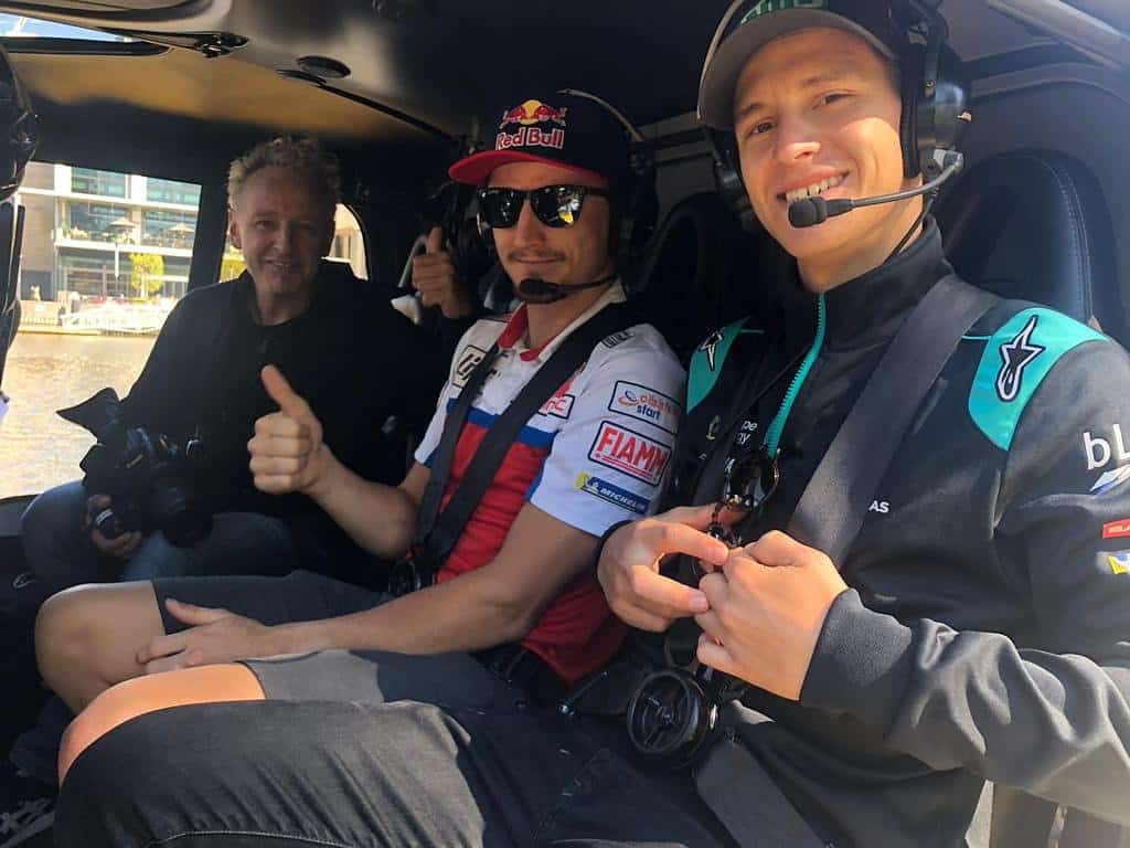 Une prestation à domicile qu’il voudra réussir. En attendant, le voici vedette de la toile avec une virée en hélicoptère et dans un lieu de restauration avec un Fabio Quartararo qui n’est donc pas seulement un compagnon d’entraînement. Le garnement australien a aussi sollicité les forces de sécurité locale dans son périple…