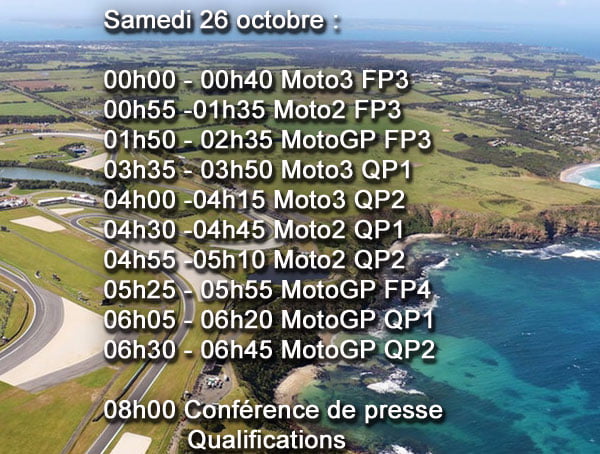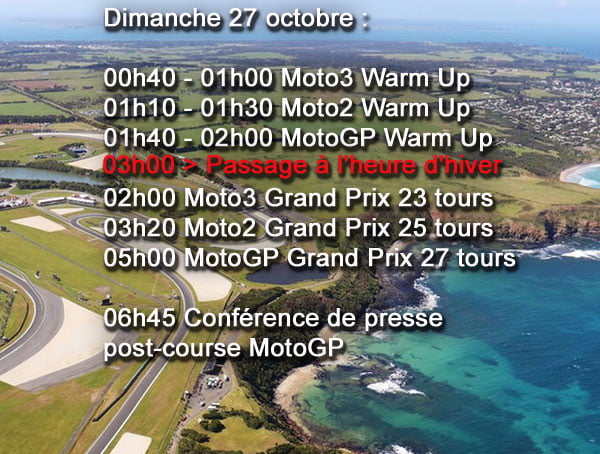 Pour vous aider dans votre démarche, nous avons décrypter les horaires des différentes séances, y compris celle réservée à tester de nouveaux pneumatiques, en tenant compte évidemment du passage à l’heure d’hiver qui interviendra dans la nuit de samedi à dimanche (à 3 heures, il sera 2 heures).