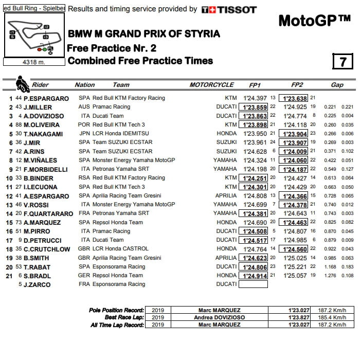 MotoGP Autriche 2 J1 : chronos cumulés