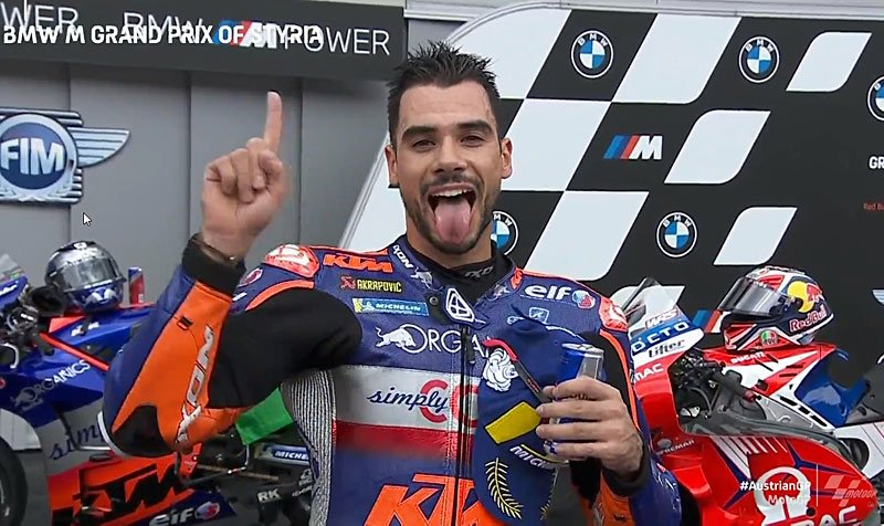 A peine descendu de sa KTM RC16 du team satellite Red Bull KTM Tech3 après avoir remporté le Grand Prix de Styrie sur le Red Bull Ring, Miguel Oliveira s’est confié devant la caméra du site MotoGP.com avec la joie d’apporter à KTM sa première victoire à domicile en catégorie reine, ainsi que la première victoire de Tech3 en MotoGP !