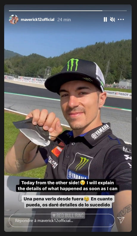 Maverick Vinales regarde tout ça derrière les grillages, en tenue officielle, comme son contrat l’exige. Le pilote catalan promet des explications dès que possible…