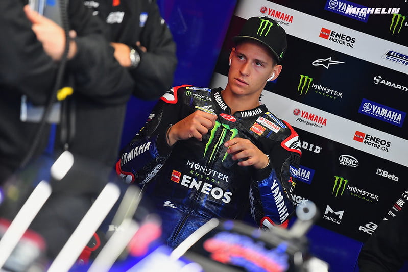 Fabio Quartararo : « Oui. Il n’a pas été fantastique. Le matin, mon feeling était super sur le sec, mais sur le mouillé nous n’avons toujours pas de bon feeling. Nous avons des problèmes que nous ne pouvons pas résoudre et nous avons essayé quelque chose de vraiment très différent pour voir s’il y avait une amélioration. Mais sur le mouillé, je ne me sens pas bien : Vers la fin, j’ai pu obtenir la sixième position mais le feeling n’est pas super donc j’essaierai de faire de mon mieux pour améliorer ces sensations. »