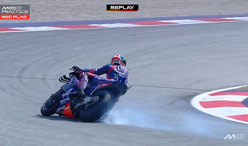 Quel que soit le sport mécanique, ceci peut arriver et n’est pas passible de sanctions. Par contre, dans le cas présent, les autorités ont noté que cela avait commencé au virage #1 et que le pilote australien avait ensuite continué à rouler sur la piste à vitesse lente, croisant parfois la trajectoire idéale, et ne manquant pas de prendre conscience de cela au virage #4, là où sont tombés quelques instants plus tard Fabio Quartararo et Miguel Oliveira.