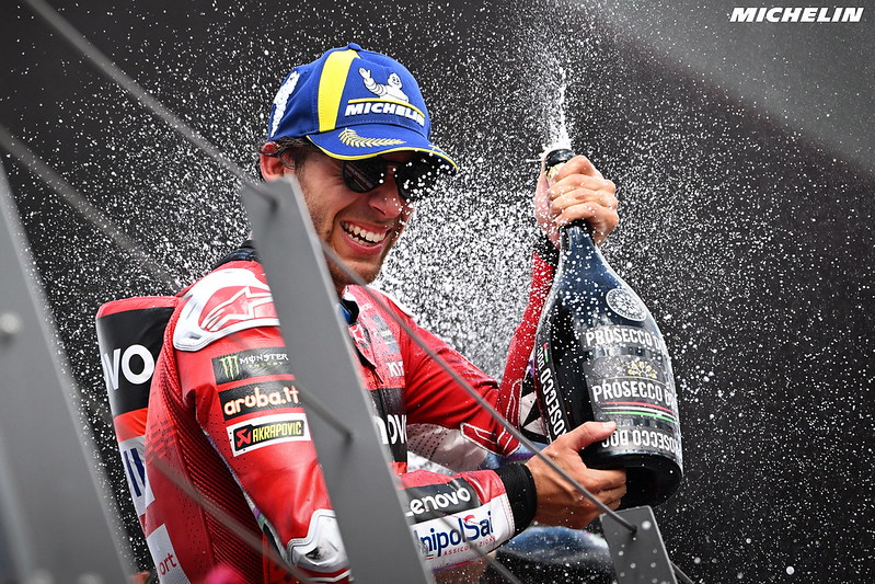 Complétant le podium d’aujourd’hui, Enea Bastianini du Team Ducati Lenovo. Enea, agressif dès le départ, un bon premier tour, immédiatement de 7e à la 3e place, et nous pensions que vous pourriez peut-être vous battre pour la victoire comme vous l’avez fait à Silverstone il y a deux semaines. Pecco et Jorge étaient juste un peu plus forts, cependant vous devez être heureux qu’après un vendredi et un samedi difficiles, vous ayez pu sauver votre week-end en montant sur le podium aujourd’hui…