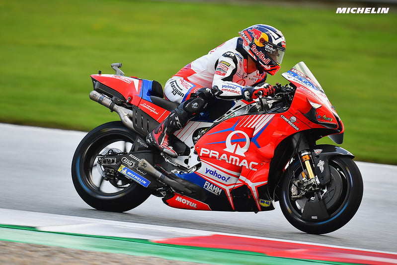 « Non ! Non, non. Pas vu de différence. Entre Martin et moi, ce sont des styles vraiment différents. Lui aussi était vraiment limite avec l’avant mais a su mieux le gérer, et moi j’ai chuté. Donc on en a déjà un peu parlé, je l’ai félicité et je l’ai pris dans les bras. Pour Pecco, j’ai moins été derrière lui : J’ai plus été derrière Martin. Je ne sais pas où était Jack mais les trois Ducati étaient là pour jouer devant. »