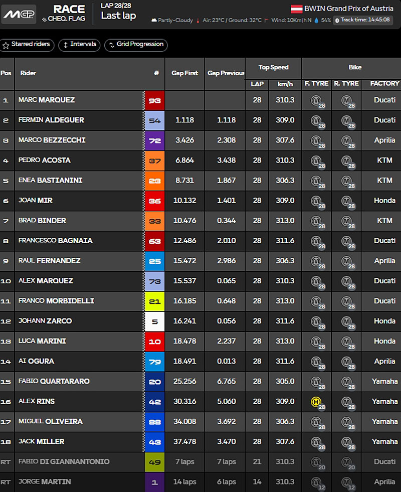 Un résultat loin des attentes de l’Italien, qui a longtemps été quatrième du championnat avant de rétrograder au sixième rang après sa blessure et son absence au Grand Prix de République Tchèque. Il reste néanmoins optimiste pour le GP de Hongrie le week-end prochain.