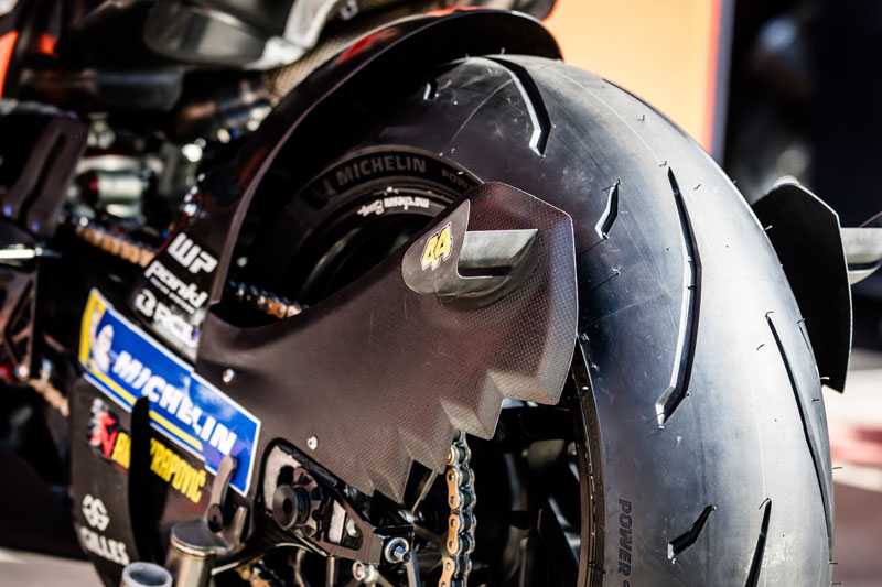 Ce matin, lors d’une FP1 étrange avec beaucoup de chutes des pilotes utilisant un pneu avant dur, Jorge Martin a réalisé le meilleur temps grâce à un pneu arrière tendre, alors que Pol Espargaro s’est fait remarquer par son attaque et sa floppée de nouveaux éléments sur sa KTM RC16 de développement (Voir ici)…