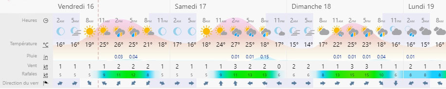 Côté prévisions météo, on est au milieu des montagnes, donc à l’abri de rien…