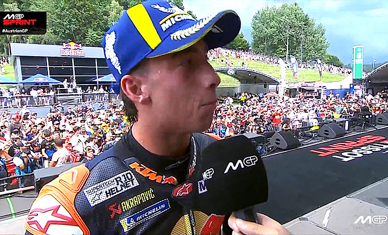 A peine descendu de sa KTM RC16 du team d’usine Red Bull KTM Factory Racing après avoir terminé 3e Sprint du Grand Prix d’Autriche MotoGP 2025 au Red Bull Ring, Pedro Acosta s’est confié devant les caméras du site officiel MotoGP.com avec la joie de confirmer ainsi son podium à Brno…
