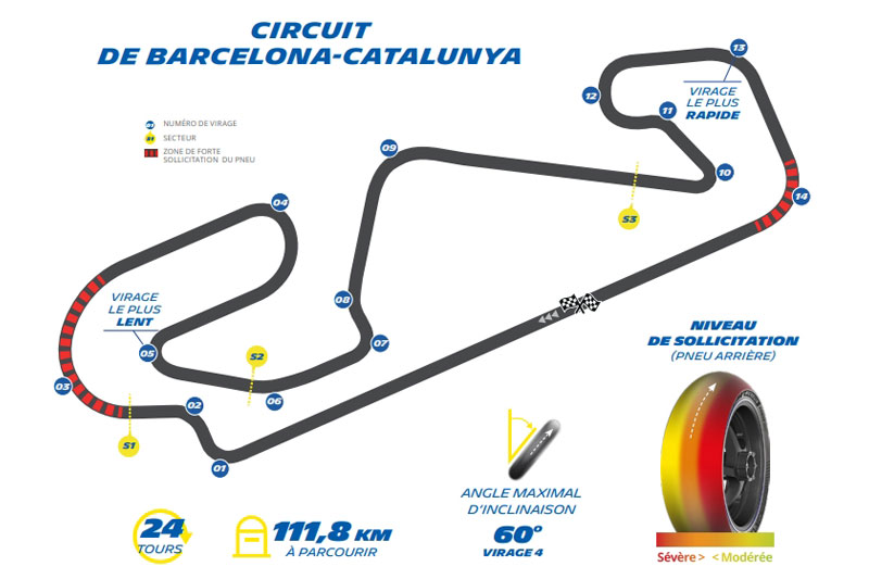 « Le Grand Prix de Catalogne est toujours un défi particulier. Le circuit est très complet, avec des lignes droites rapides, des courbes lentes et rapides, du dénivelé et même du banking. Mais sa particularité, c’est le grip : il est très faible, et le phénomène de patinage est très prononcé. Si les pneus arrière patinent trop, leur température de surface augmente, ce qui réduit encore l’adhérence et accélère l’usure. C’est ce qui rend cette course si difficile à interpréter pour les équipes.