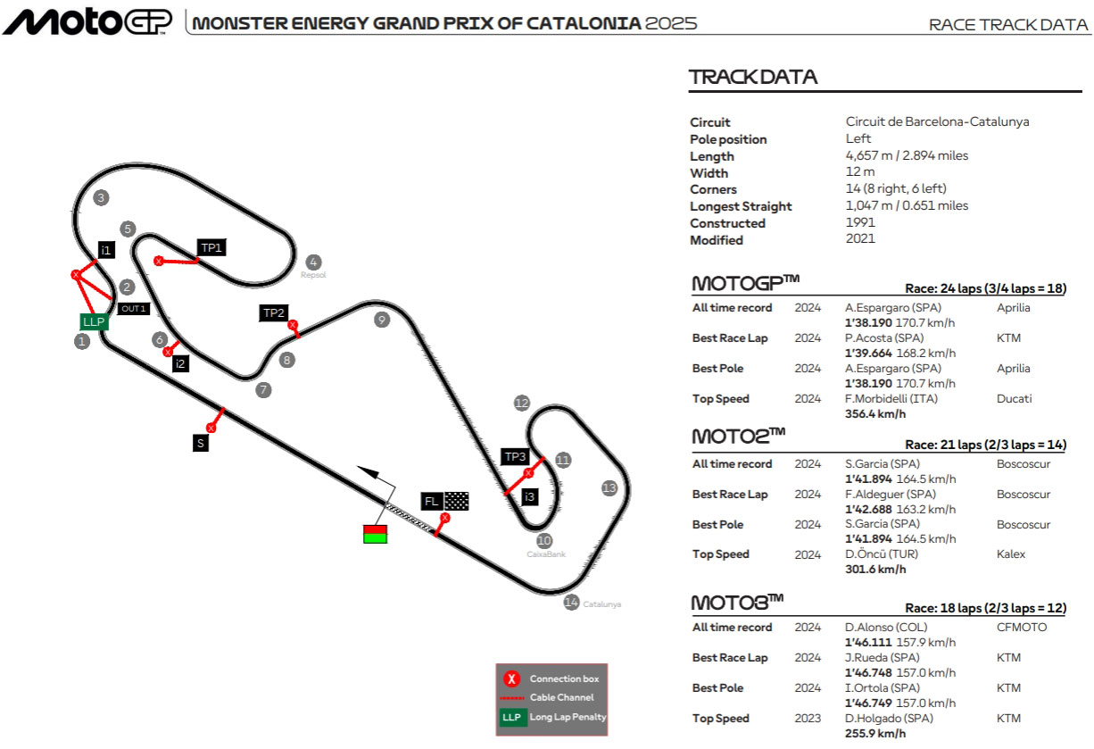 Pour écrire ce quinzième chapitre de la saison MotoGP 2025, il faudra parcourir 12 fois le tracé de 4657 mètres lors du Sprint de samedi et effectuer 24 boucles le dimanche.