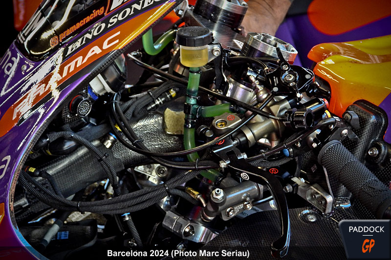 Après un mercredi bien maussade qui nous a permis de rechercher les dernières traces de ce qui était jadis Derbi, la mythique marque espagnole (on y reviendra), le soleil est donc venu illuminer le circuit de Barcelona–Catalunya en ce jeudi de préparatifs, avant les derniers affrontements qui détermineront en particulier la hiérarchie finale de la catégorie reine des GP.