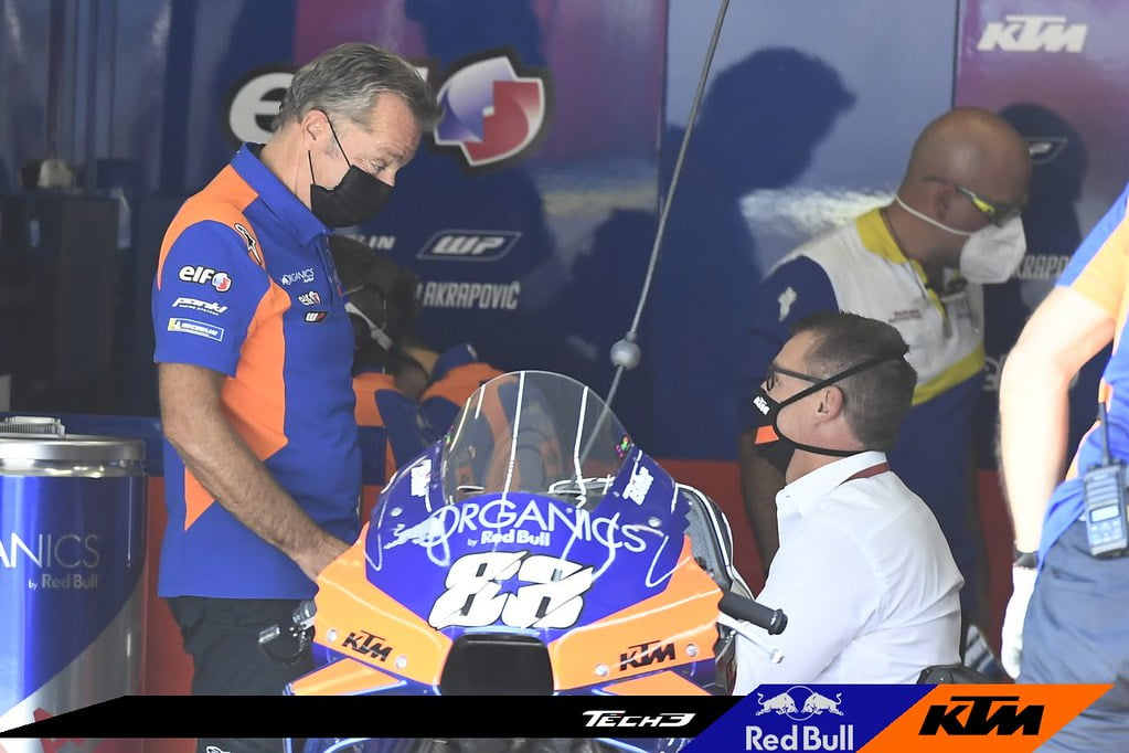 Hervé Poncharal : « Red Bull et KTM sont toutes les deux des sociétés autrichiennes, elle parle la même langue et leurs sièges sociaux sont à quelque chose comme 25 minutes l’un de l’autre. Je pense donc qu’elles communiquent beaucoup entre elles et je sais également qu’elles ont parlé de Tech3. Notre contrat est avec KTM pour trois années : 2019, 2020 et 2021. Nous n’avons pas de problème pour les saisons suivantes. La seule question est que je crois que les directions autrichiennes de Red Bull et KTM discutent entre elles au sujet de l’année prochaine. C’est le principal sujet mais je ne suis pas inquiet. Ma seule préoccupation, c’est de mettre Iker et Miguel en bonne position à la fin de l’année. Miguel est actuellement le pilote KTM le mieux placé au classement du championnat, puisqu’il est huitième à 25 points de la tête. Je pense donc que nous ne faisons pas du mauvais travail, et si certaines personnes veulent rester avec nous, elles sont les bienvenues, et si elles veulent nous laisser tomber, elles sont aussi les bienvenues. »