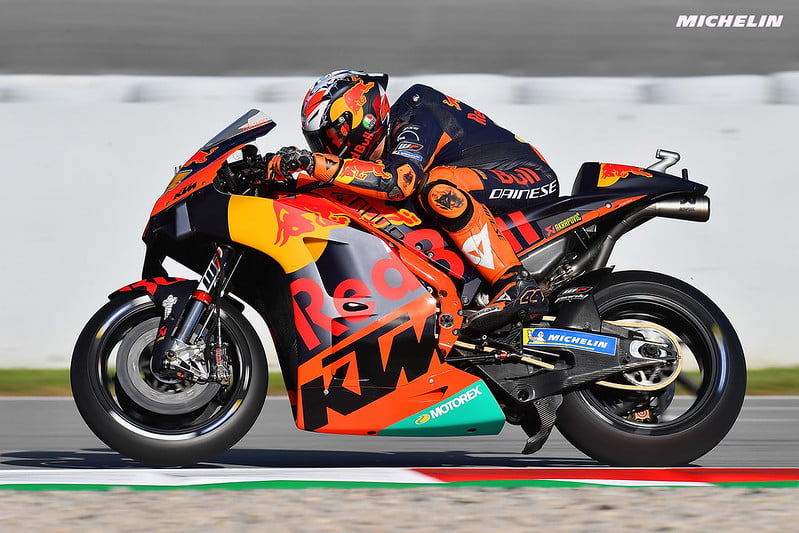 Pol Espargaró : « Nous avons passé toute la première séance d’essais sur la piste et à la fin, cela n’a servi à rien. Je n’ai rien pu tirer de cette séance parce que nous n’avions absolument aucune adhérence et j’avais l’impression d’être en pneus pluie. Nous étions presque derniers ! L’après-midi, j’ai pu faire un bon tour tout de suite, mais je ne me sentais pas encore très bien, car je ne sentais pas la limite et je manquais les points de freinage. C’était vraiment difficile de comprendre comment je peux rouler vite. Je n’ai pas compris ni les pneus ni la moto. Dans le dernier secteur, je perdais quatre dixièmes de seconde sur mon coéquipier et je ne sais pas pourquoi. Sur les datas, nous pouvons voir de petits détails, donc nous devons réduire un peu le frein moteur, mais en même temps je dois augmenter le contrôle de traction de manière significative parce que nous devons lutter contre le patinage des pneus. Un tour rapide est presque impossible pour moi car je suis constamment en danger de chute. Je ne me sens pas débordé sur la moto, je peux faire mes tours facilement mais malheureusement je ne sais pas comment je peux aller plus vite. Je ne comprends pas toute la situation. »