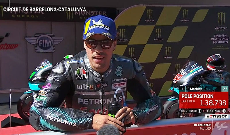 A peine descendu de sa Yamaha YZR-M1 du team Petronas Yamaha SRT après avoir obtenu la première place sur la grille de départ du Grand Prix de Catalogne à Barcelone, Franco Morbidelli s’est confié devant la caméra du site MotoGP.com avec la joie d’avoir réalisé sa première pole position en catégorie reine…