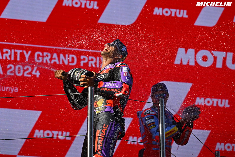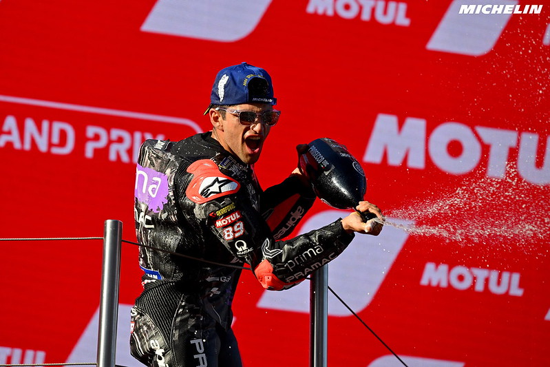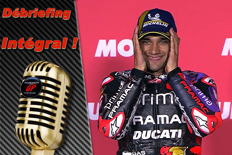 Jorge Martin : « Merci à tous. Merci à tout le monde. C’est sûr, c’est un sentiment merveilleux, je n’arrive toujours pas à y croire. Je suis en état de choc, je ne sais pas quoi dire, les émotions sont si fortes, j’ai beaucoup pleuré, alors peut-être que maintenant je suis un peu plus détendu. J’ai beaucoup parlé avec les médias, et maintenant cela fait presque une heure après le grand moment, mais vous savez, je veux juste célébrer, je veux juste être avec mon équipe, avec mes proches, ma famille, mes amis. Et oui, c’est tellement émouvant. Ça a été un long parcours. Je pense que ma carrière n’a pas été facile, bien sûr j’ai eu de bonnes opportunités devant moi, mais je pense que je les ai construites, car je travaille dur, je fais beaucoup de sacrifices à la maison chaque jour pour essayer d’être un homme meilleur. Et oui, la saison dernière j’ai eu une opportunité, mais je pense que je n’étais pas préparé pour gagner, je n’étais pas préparé pour signer, disons. Mais cette année, j’ai senti que c’était mon année, et oui, merci à tous les gens, merci à Pramac, merci à Ducati pour m’avoir donné l’opportunité d’avoir une moto extraordinaire pendant ces quatre années, et vous savez, m’avoir donné l’opportunité de me battre jusqu’à la fin avec un Pecco extraordinaire. »