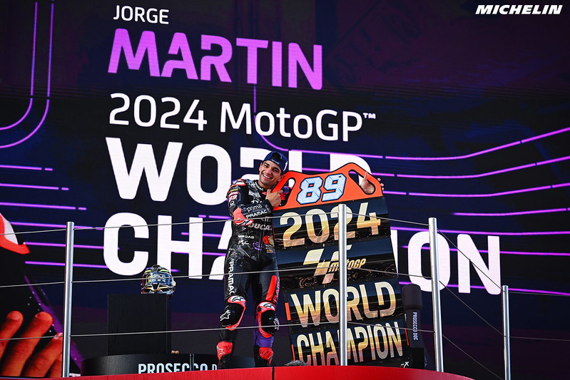 Mesdames et Messieurs, je vous souhaite comme toujours la bienvenue à la conférence de presse la plus importante de la saison pour féliciter le champion du monde 2024 de MotoGP, Jorge Martin de Prima Pramac Racing, Jorge, toutes mes félicitations ! Un moment historique pour vous et Prima Pramac Ducati, la première équipe indépendante dans l’ère du MotoGP à remporter le titre, le premier depuis Valentino Rossi en 2001, le cinquième champion du monde espagnol de la catégorie reine, avec Alex Criville, Jorge Lorenzo, Marc Marquez et Joan Mir, et vous, avec Casey Stoner et Pecco Bagnaia, êtes juste l’un des trois champions du monde Ducati.