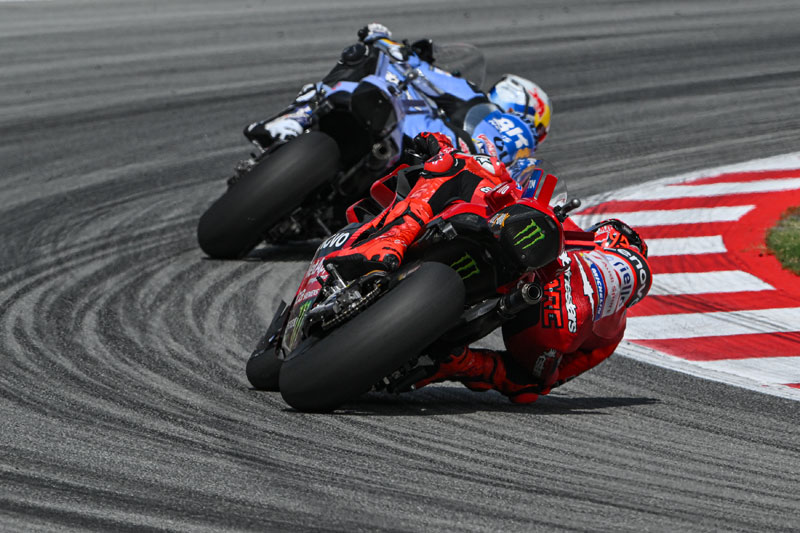 Marc Márquez : “Oui, mais j’ai essayé. Vous voyez au virage 10, j’ai plongé… et ensuite j’ai eu un flashback de ce qui t’es arrivé hier (rires). Mais j’essaierai toujours, parfois vous essayez et parfois vous pouvez. Aujourd’hui avec Alex, l’an dernier avec Pecco, ici… Hier, j’ai dit aux journalistes espagnols, je prédis une course comme celle-ci. J’ai dit : “Je suivrai Alex, et peut-être qu’à la fin j’essaierai, mais il sera plus rapide que moi”. Et c’était exactement la même course que l’an dernier ici avec Pecco : suivre toute la course, et dans les derniers tours, ils en ont eu un peu plus. Mais pour moi, le plus important pour un championnat, c’est que sur un circuit où je rencontre des difficultés, je reste proche du pilote le plus rapide. »