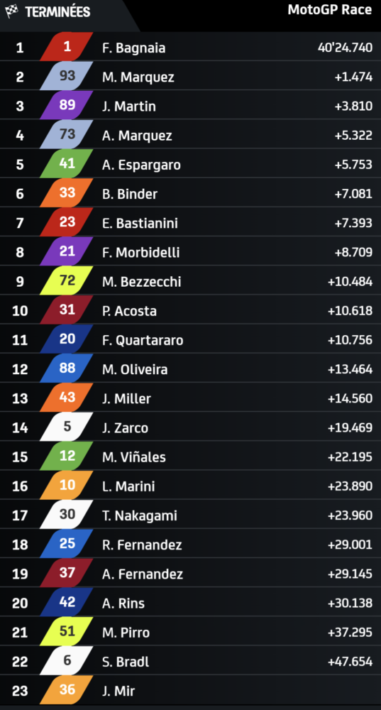 Résultat du Grand Prix de Barcelone MotoGP 2024 :