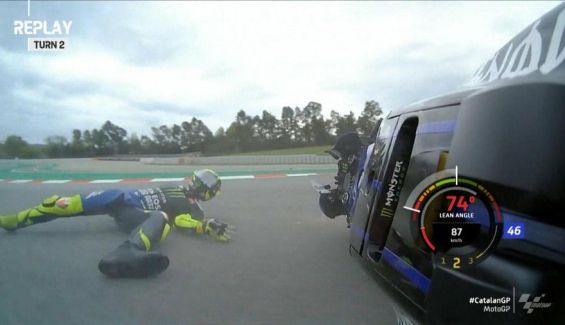 C’est un Valentino Rossi fort dépité qui s’est relevé d’une chute d’un Grand Prix de Barcelone où il ne restait que 9 tours à faire. Jusque-là, il semblait parfaitement maitriser son parcours vers le 200ème podium en catégorie reine. Mais il s’est dit que, second, c’était moins bien que premier et il a tenté d’aller chercher le leader Fabio Quartararo. Mal lui en a pris et il le reconnait bien volontiers…