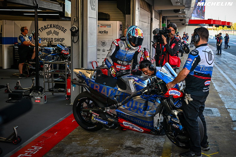 Après les départs de Maverick Viñales et de Miguel Oliveira, et la retraite d’Aleix Espargaro, seul Raúl Fernández (Trackhouse Racing), poursuivra l’aventure avec Aprilia en 2025. Ce mardi, il s’agissait donc pour Jorge Martin et Marco Bezzecchi de découvrir leur nouvelle machine, eux qui n’ont jusqu’ici piloté que des Ducati en MotoGP. Ai Ogura devait quant à lui découvrir le MotoGP en général, lui qui vient d’être promu en catégorie reine après son titre en Moto2.