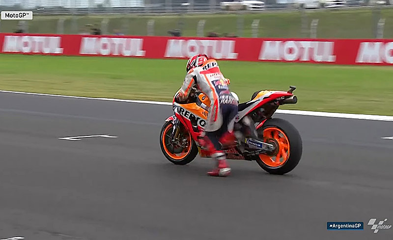 L’exemple le plus célèbre a bien évidemment eu lieu lors de l’incroyable Grand Prix MotoGP de la République Argentine 2018, lorsque Marc Márquez a calé sur la grille juste avant le départ, mais dorénavant toute tentative de redémarrage à la poussette sur ou au bord de la piste sera interdit !