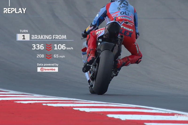 Les nouveaux graphiques, mis en évidence en tant que Data powered by Brembo, comprennent un replay spécial montrant le point de freinage le plus dur sur chaque circuit et un graphique motion tracker montrant la réalité de la décélération dans le MotoGP™. D’autres graphiques – alimentés par Brembo – seront mis en œuvre au cours de la saison dans le but de fournir aux fans des informations clés sur le changement de vitesse lorsqu’une machine MotoGP™ plante les freins, permettant ainsi aux téléspectateurs de profiter de plus d’informations que jamais sur la technologie et les techniques de freinage présentées dans ce sport.