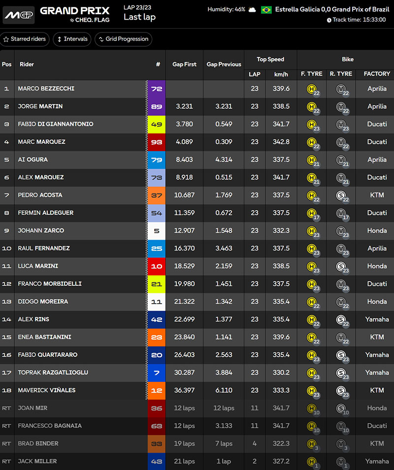 Résultat du Grand Prix du Brésil MotoGP 2026 :