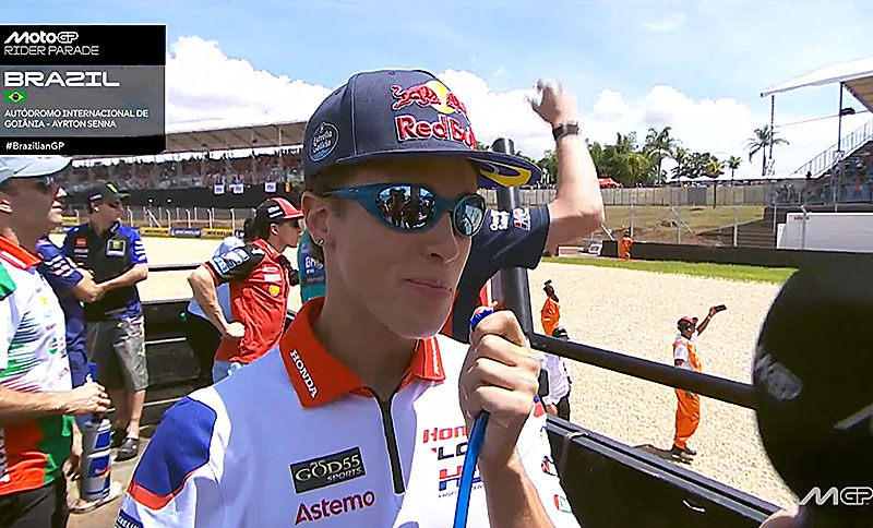 La parade des pilotes MotoGP a su faire sa place dans le programme du week-end en devenant une tradition qui satisfait à la fois les spectateurs présents, aujourd’hui Senna pour le Grand Prix du Brésil, mais aussi les pilotes pour qui il s’agit du seul moment où ils peuvent communiquer tous ensemble sans enjeu.