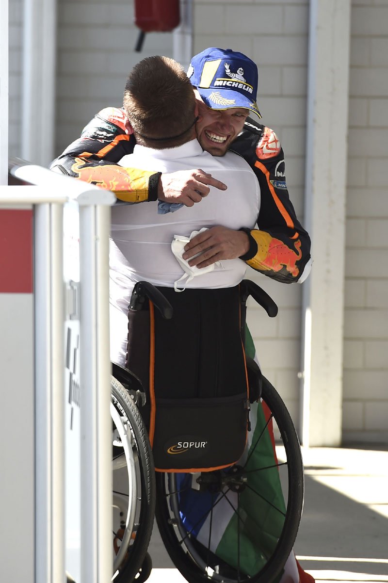 « C’est incroyable. C’est fou de penser que je suis le premier Sud-Africain à gagner une course de MotoGP. Les Sud-Africains sont tout simplement fous, les fans de sport mécanique et de sport en général. Depuis que j’ai commencé à faire des courses, j’ai l’impression d’avoir tout le pays derrière moi. Obtenir la première victoire a été absolument incroyable, pas seulement pour moi. J’espère que cela créera quelque chose en Afrique du Sud pour notre sport. »