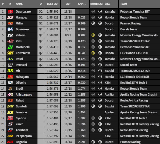 Classement Grand prix de République Tchèque à Brno FP2 :