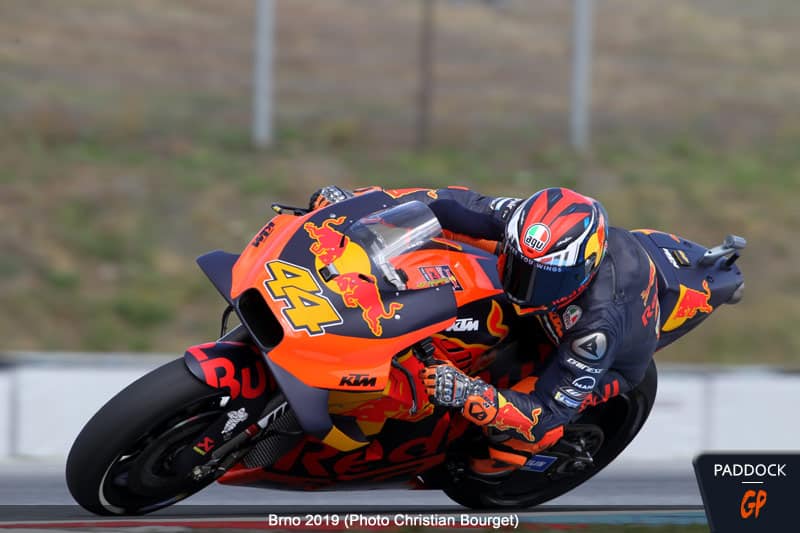 Le pire n’est jamais certain, mais la pluie est bien attendue à partir de cette nuit, et il n’est pas évident que la piste du circuit tchèque soit sèche demain à 9h55, mais le pilote KTM voit le verre à moitié plein : « La KTM se comporte bien ici, en particulier avec les pneus tendres qui permettent de bien meilleurs chronos que les pneus moyens et durs. Néanmoins, j’étais proche du top 10 dans la FP1 sans la gomme tendre. Mais l’adhérence avec les pneus tendres est de premier ordre ici, et tout le monde s’est beaucoup amélioré. Nous n’avons pas pu les utiliser à cause du problème technique mais j’ai quand même progressé de près de sept dixièmes de seconde par rapport à la matinée avant le problème technique dans deux secteurs. Si nous n’avions pas été ralentis, nous serions maintenant en route pour la Q2 et je pense que nous aurions pu rouler en très petit 1’56 en FP2. J’aurais au moins pu faire 1’56.2 ou 1’56.3. J’en suis convaincu ».