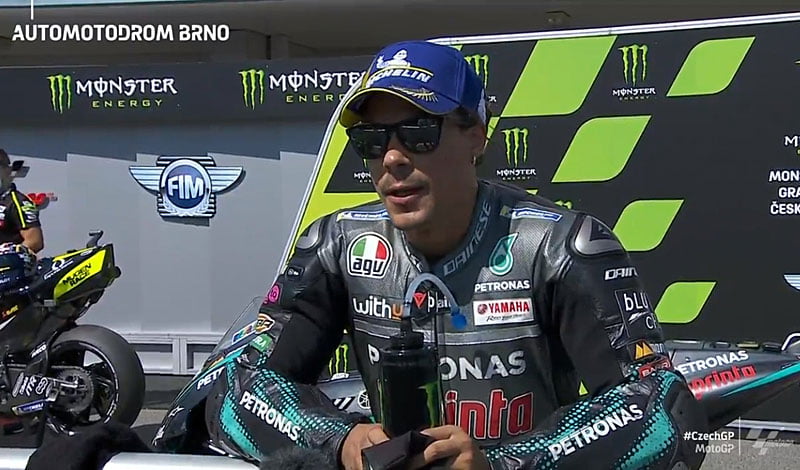 A peine descendu de sa Yamaha M1 du team satellite Petronas Yamaha SRT après avoir obtenu la troisième place sur la grille de départ du Grand Prix de la République Tchèque à Brno, Franco Morbidelli s’est confié devant la caméra du site MotoGP.com avec la satisfaction d’avoir assuré la première ligne.
