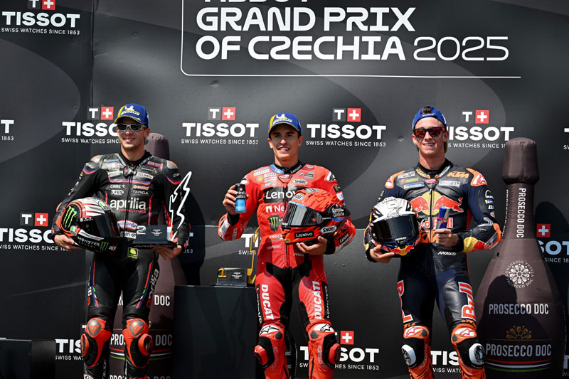 Dimanche, la victoire du Tissot Grand Prix of Czechia 2025 est également revenue à Marc Márquez, cette fois devant Marco Bezzecchi (Aprilia Racing). La troisième marche du podium est occupée par Pedro Acosta (Red Bull KTM Factory Team). Pour cette course de 21 tours, le choix des pneus a également été le même par les trois occupants du podium : un MICHELIN Power Slick Medium à l’avant comme à l’arrière.