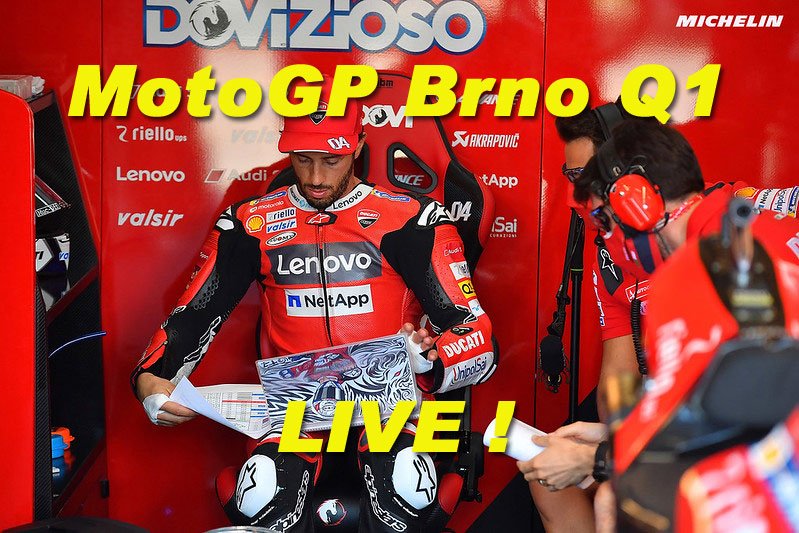 C’est une passionnante Q1 qui s’ouvre dans cette séance qualificative du Grand Prix de la République tchèque, version MotoGP. Seulement deux pilotes en sortiront pour rejoindre la grande finale de la Q2. Et on y trouve des pointures : Alex Rins, Takaaki Nakagami, Jack Miller, Brad Binder ou encore Miguel Oliveira mais aussi et surtout un Andrea Dovizioso qui affirmait attendre de ce rendez-vous à Brno de grandes choses… L’officiel Ducati n »aura pas droit à l’erreur, surtout dans un contexte marqué par un contrat encore non renouvelé pour 2021…